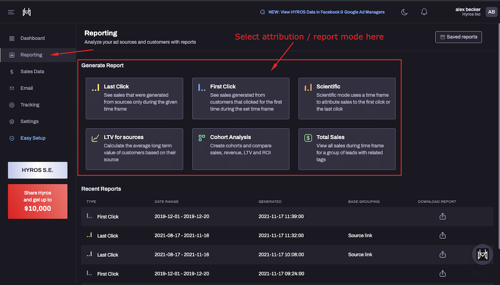 SegMetrics is a marketing analytics software enabling businesses to understand their traffic value. This platform differentiates itself from HYROS in reporting since it offers a more detailed recommendation for tweaking your marketing.